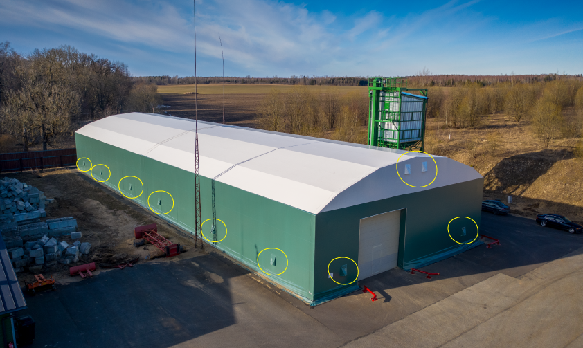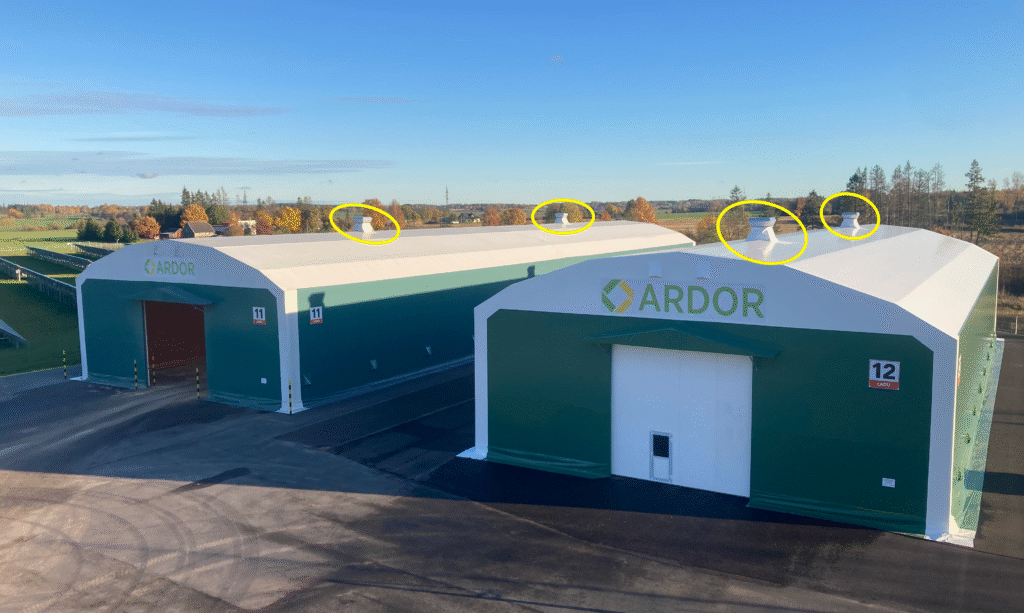 Bulk storage halls – PVC hall stores pellets, grain, or fertilizer; a well-designed ventilation system is essential. In some instances, installing an interior PVC fabric may be necessary to eliminate condensation formation completely.