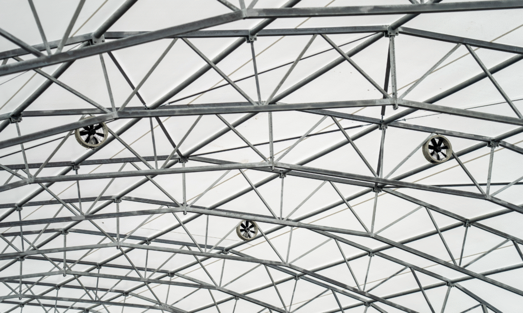 Spring and autumn temperature fluctuations, along with heating the hall, create condensation on interior surfaces. To prevent this, choose a ventilation solution suited to the use: natural ventilation, supply and exhaust fans, roof ventilators, or an interior liner (double PVC cover).