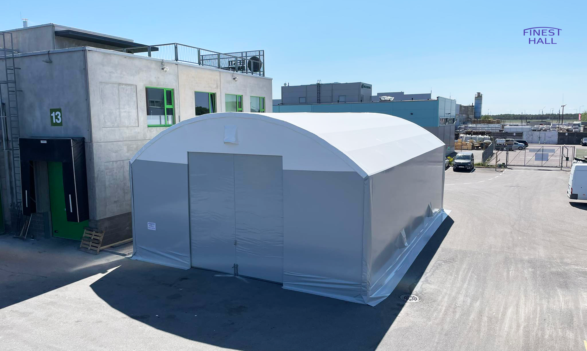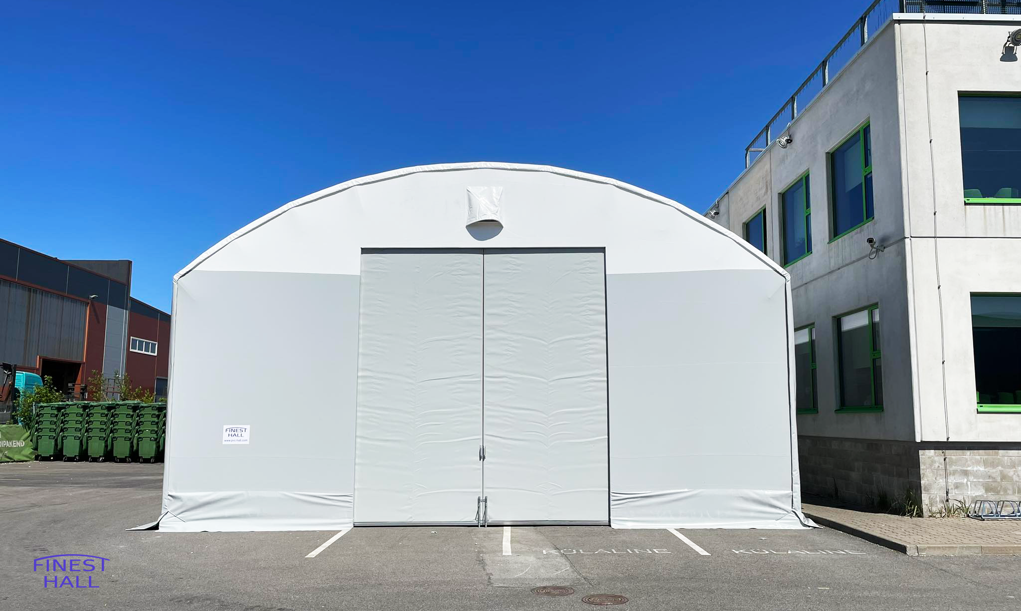 Uksed: mõlemas otsas uks 4m lai ja 4,5m kõrge (PVC hall rekkaga läbisõidetav).